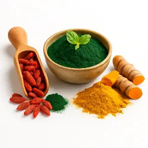 - 💪 Zdroj rostlinných bílkovin: vhodné pro vegetariány a vegany – například quinoa, chia semínka nebo spirulina.